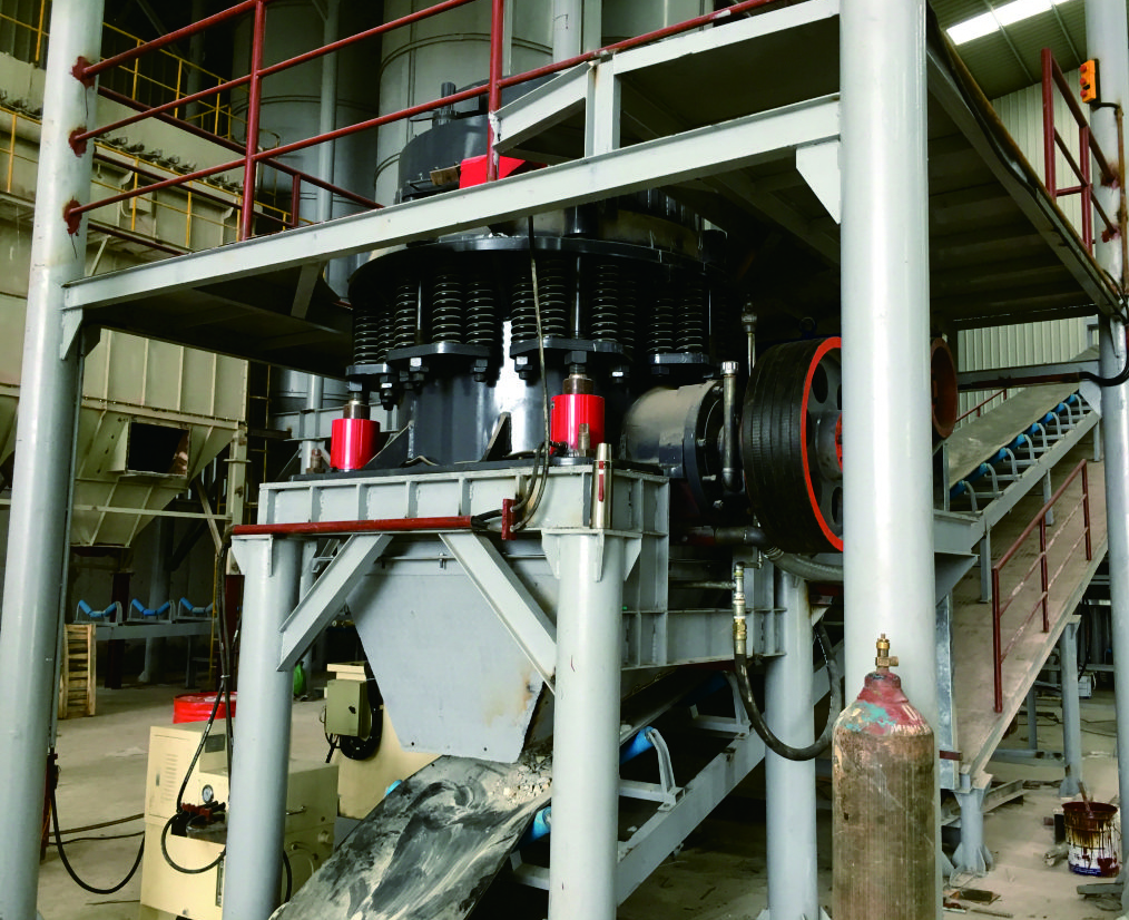使礦石在(zai)破碎腔內不(bu)斷受(shou)到(dao)沖擊,擠壓和彎曲(qu)作用而(er)實現礦石的(de)破碎。