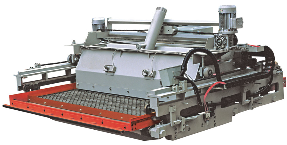 布料(liao)裝(zhuang)(zhuang)置(zhi)(zhi)是壓(ya)(ya)(ya)磚(zhuan)機重要的輔助設備,它的功(gong)能是輸送陶(tao)瓷粉料(liao)到壓(ya)(ya)(ya)磚(zhuan)機模具的模腔(qiang),同(tong)時推出壓(ya)(ya)(ya)磚(zhuan)機壓(ya)(ya)(ya)制(zhi)好(hao)的磚(zhuan)坯到輸送線(xian),對壓(ya)(ya)(ya)磚(zhuan)機模具模腔(qiang)進行一次(ci)(ci)布料(liao)。YP系列壓(ya)(ya)(ya)磚(zhuan)機配置(zhi)(zhi)的一次(ci)(ci)布料(liao)裝(zhuang)(zhuang)置(zhi)(zhi),可分(fen)為直線(xian)型(xing)布料(liao)裝(zhuang)(zhuang)置(zhi)(zhi)和(he)曲柄型(xing)布料(liao)裝(zhuang)(zhuang)置(zhi)(zhi)兩種。直線(xian)型(xing)布料(liao)裝(zhuang)(zhuang)置(zhi)(zhi)采(cai)用(yong)同(tong)步(bu)帶傳(chuan)動(dong)(dong)、變頻(pin)器控制(zhi)電機的轉速,運行平穩、布料(liao)均勻。曲柄型(xing)布料(liao)裝(zhuang)(zhuang)置(zhi)(zhi)采(cai)用(yong)油馬達驅動(dong)(dong)曲柄傳(chuan)動(dong)(dong),具有運動(dong)(dong)速度(du)快的特點(dian)。
